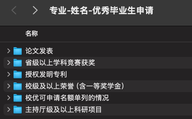 学生申请在“研究生教育管理信息系统”(以下简称“系统”)(//yjsfw.sqtu.net/allogene/)内完成。学生在“奖助——奖学金和荣誉称号”栏目完善“个人申请信息”,并将填写好的《杭州师范大学优秀毕业生登记表》(附件2)在“主要事迹”的“附件信息”中完成上传(相关荣誉或论文等均需附佐证材料进行上传,论文封面、目录、正文、图书馆收录证明(四类及以上需提供)整合在一份PDF上,荣誉证书需为清晰的照片或扫描件,按照“姓名+论文题目/荣誉名称”进行命名),在系统里提交申请的同时填写《色情图 2026届优秀研究生毕业生申请表-姓名》(附件1,内含2张sheet均需填写)并附所有佐证材料压缩包(佐证材料按照下图所示整理,命名:专业-姓名-优秀毕业生申请)在10月15日(周三)20:00前发送至学院研会邮箱[email protected],方便院研会进行汇总。学院对申请材料进行审核后对符合参评条件的毕业生进行评审。