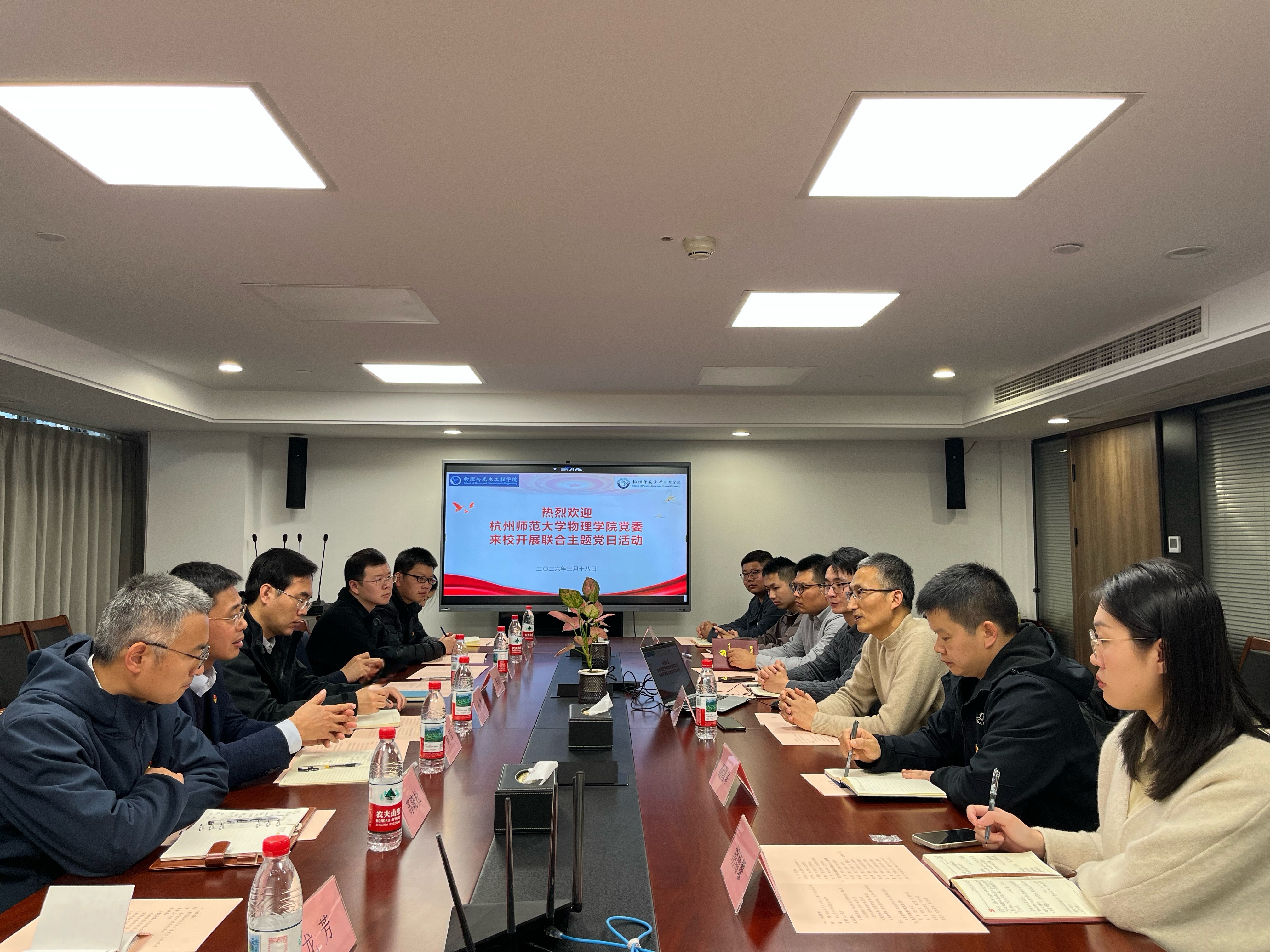 3月18日,学院党委赴国科大杭高院物光学院开展党建联建交流。双方党组织负责人、党委委员、党支部书记及支委代表参加活动。