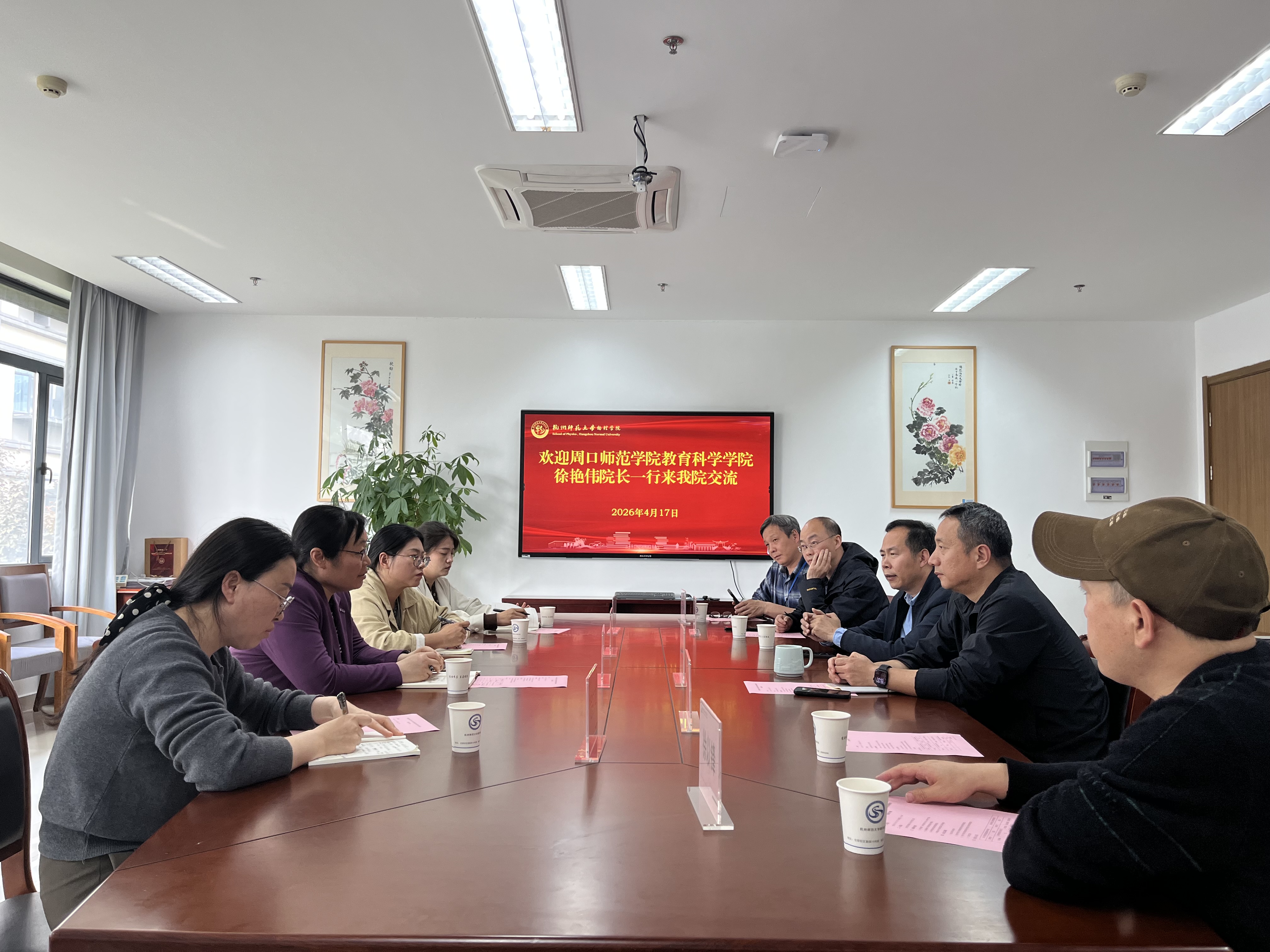 4月17日下午,周口师范学院教育科学学院院长徐艳伟一行来色情图 调研交流,我校教务处处长孙德芳、学院院长侯红生及相关专业负责人热情接待调研。